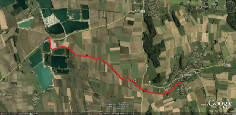Weisinger Straße zwischen Lauingen und Weisingen auf Höhe Kieswerk Wager.